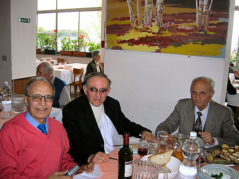 In alto da sinistra il presidente, preso da impegni anche a pranzo ! Gaetano Salgaro con Amilcare Angelucci, Fr. Stefano, Francesco Bordone, Gregorio Canneti, Don Radici, Michele Salmeri, Fr. Arnaldo e Mario Vigneti, sotto la famiglia Cavallaro, Cetty e Mario Chiodi con Mamma Gozzo, Teresa Aufiero tra Luigi e Loretta Gozzo, poi la Signora Tantillo Nahum con la famiglia Anan, Serena Ascione, Lino Sepe con i coniugi Chiodi, Giovanni Tantillo, i coniugi Badalucco, Salvo Giachi e Hannis