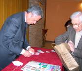 Domenica 1 aprile, ore 11.00. Gli interventi prima della Santa Messa. Nell’attesa del presidente Giancarlo Consolandi, in ritardo giustificato da impegni familiari, prende la parola Fr. Bruno intrattenendo i partecipanti sullo spirito lasalliano e la grande famiglia La Salle. Arriva il presidente salutato da un fragoroso applauso. Dopo aver salutato i presenti, Giancarlo Consolandi riporta i saluti del vescovo di Tripoli e la situazione delle chiese in Libia, il ripristino al culto della chiesa di S. Maria degli Angeli, affidata agli Evangelici. Comunica inoltre che la nostra associazione è stata invitata a Londra dall’amico Raphael Luzon, in occasione del 40° anniversario del rimpatrio della comunità ebraica. Lo storico Francesco Prestopino presenta gli ultimi sui libri sulla vita italiana in Libia. Fr. Bruno Francesco Prestopino e Giancarlo Consolandi